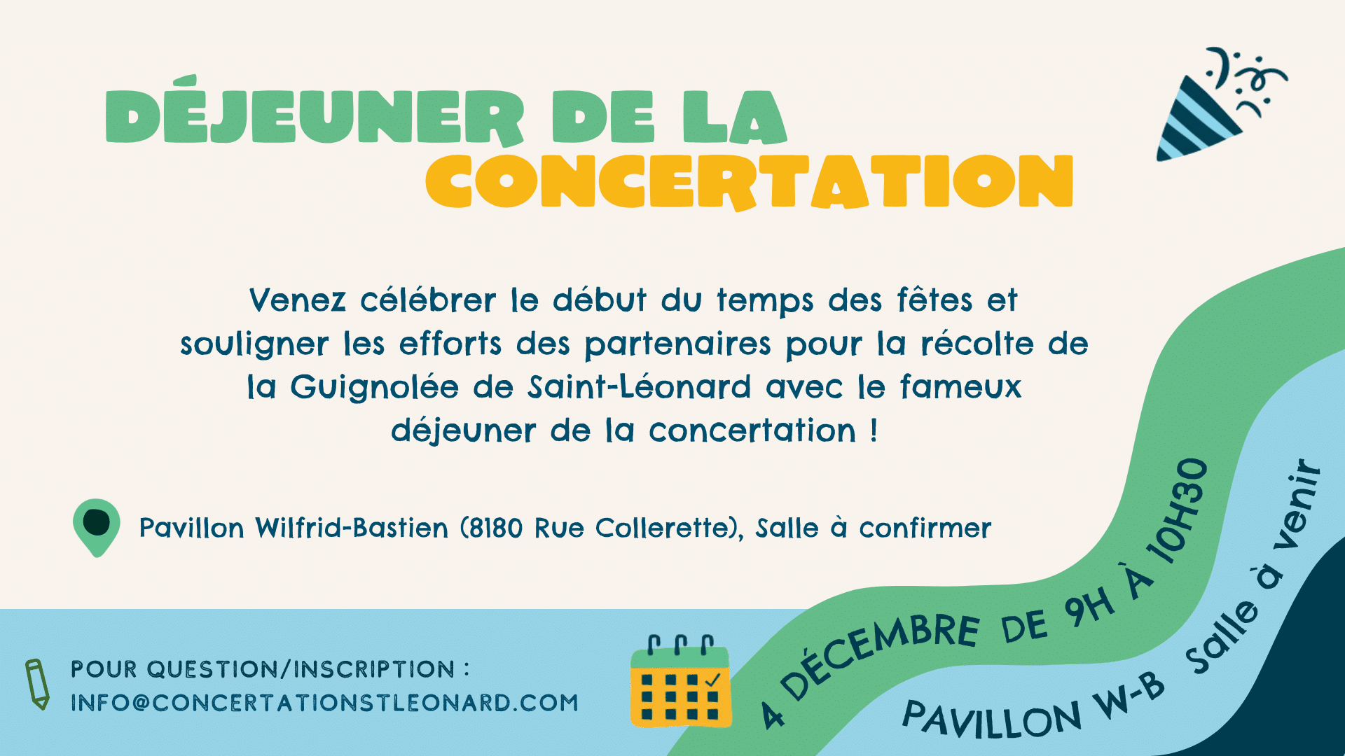 📧 Pour toute questions et pour vous inscrire veuillez contacter Déogracias à l’adresse courriel : communication@concertationstleonard.com