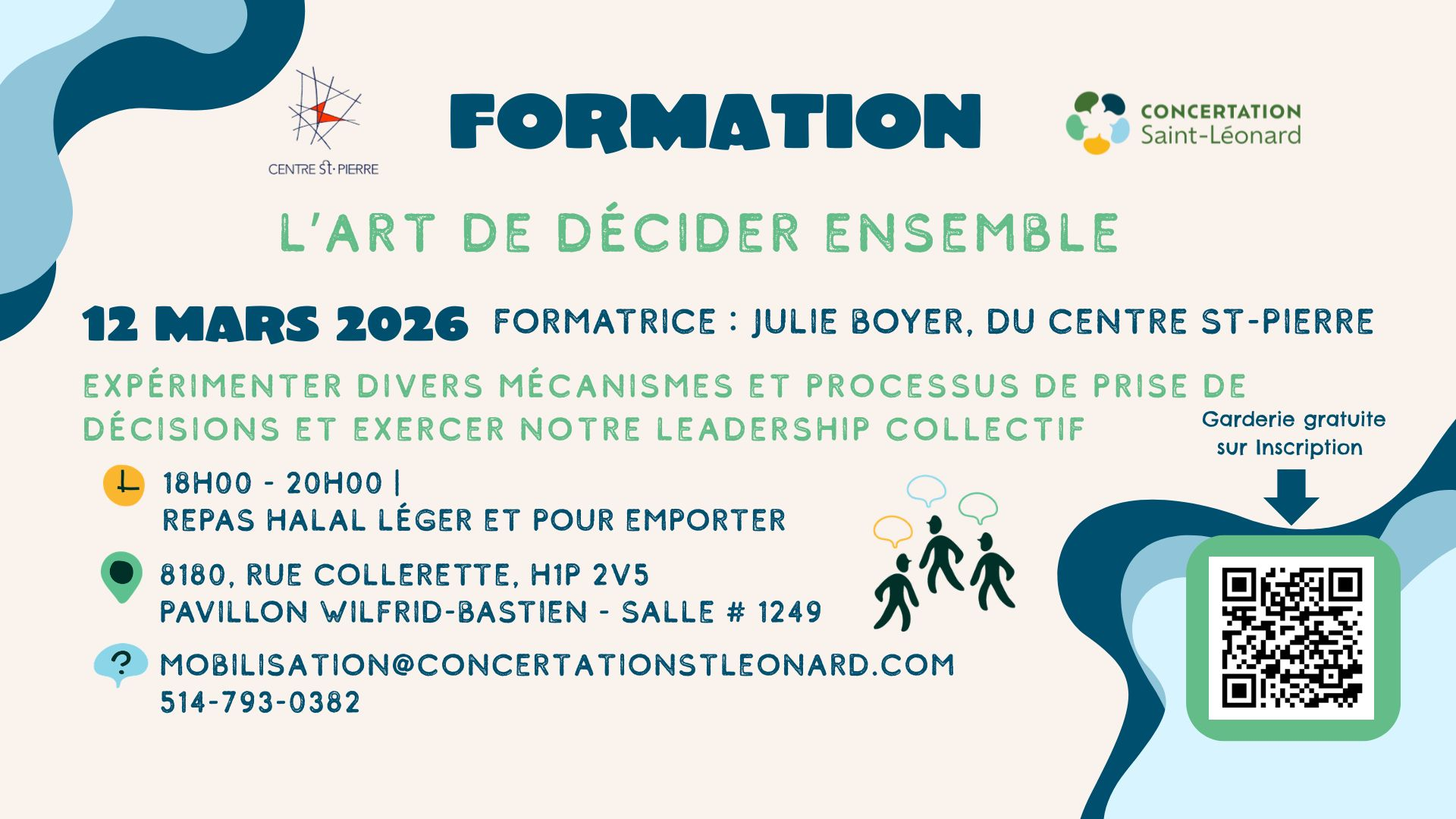📧 Pour toute questions et pour vous inscrire veuillez contacter Déogracias à l’adresse courriel : communication@concertationstleonard.com